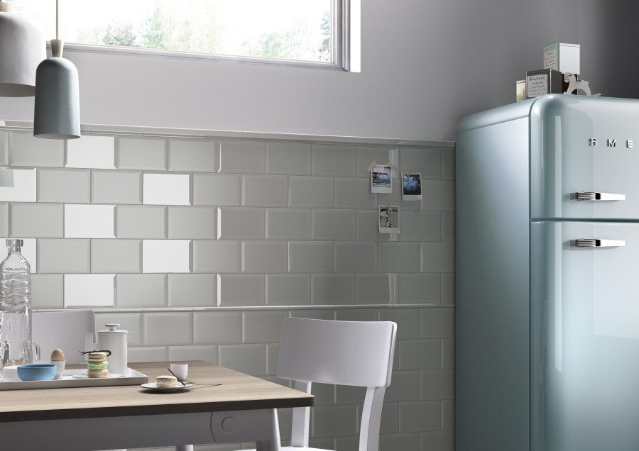 Var inte rädd för att ta ut svängarna. En helkaklad vägg i köket är fräscht och lätt att hålla rent. Kökskakel med fasade kanter finns i en mängd varianter. Biselado är ett samlingsnamn för den typen av plattor, det är spanska och betyder avfasade. Vi säljer mest av Edge Bianco och Cento per Cento.