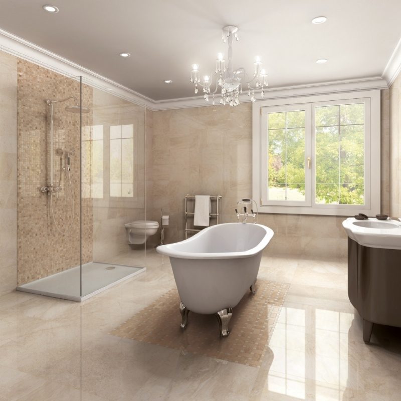 Det finns som sagt flera olika ytor att välja på. Den polerade är mest populär på väggar i badrum. På badrumsgolvet är det mer lämpligt och vanligt med den matta eller sidenmatta ytan.
