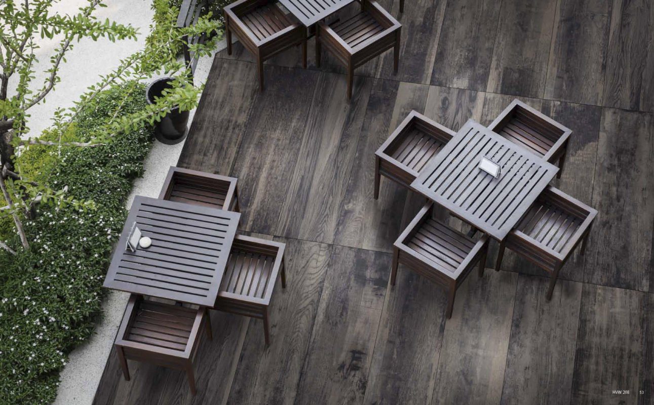 Med granitkeramik på din altan får du känslan av det material du vill men tåligheten och slitstyrkan från granitkeramiken. På bilden en klinker med träkänsla från Del Conca.