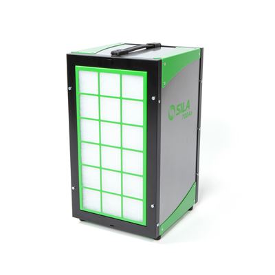 Luftrenare med kapacitet på 700 m³/h. Klarar arbetsytor upp till 27 m². HEPA-filter H13 och tvättbart grovfilter. Två utblås gör att ett undertryck skapas genom att luften både kan ledas utanför och cirkulera i arbetsområdet. Filtervakt som indikerar filterbyte. Grovfiltergaller skyddar filtret och förenklar vid filterbyte. Drifttidsmätare. Utformningen gör att den tar lite plats och är staplingsbar. Släta sidor för enkel rengöring.
