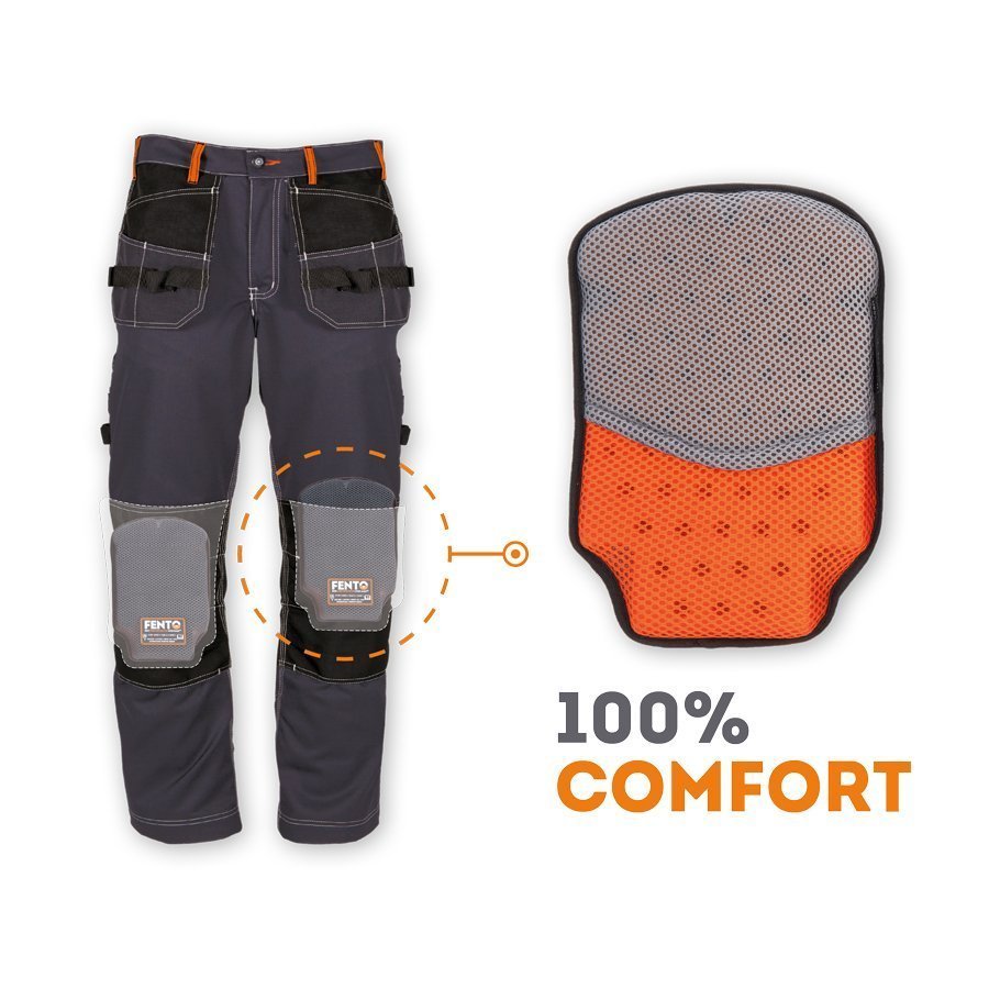 Knäskydd för arbetsbyxor med knäskyddsfickor. Patenterad konstruktion utvecklad för dem som arbetar mycket i knästående läge. Tre lager av foam som andas och samtidigt är vattentätt. Kilformad nederdel (Wedge™) för optimal avlastning av knät. Runt knäskyddet sitter tyg för maximal fuktupptagning. Godkänd enligt CE EN-14404.