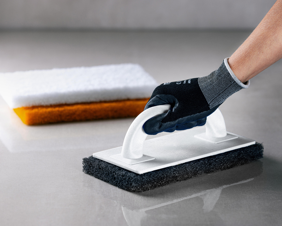 Komplett set med skurblockshållare och tre olika skurblock, fin, medel och grov.