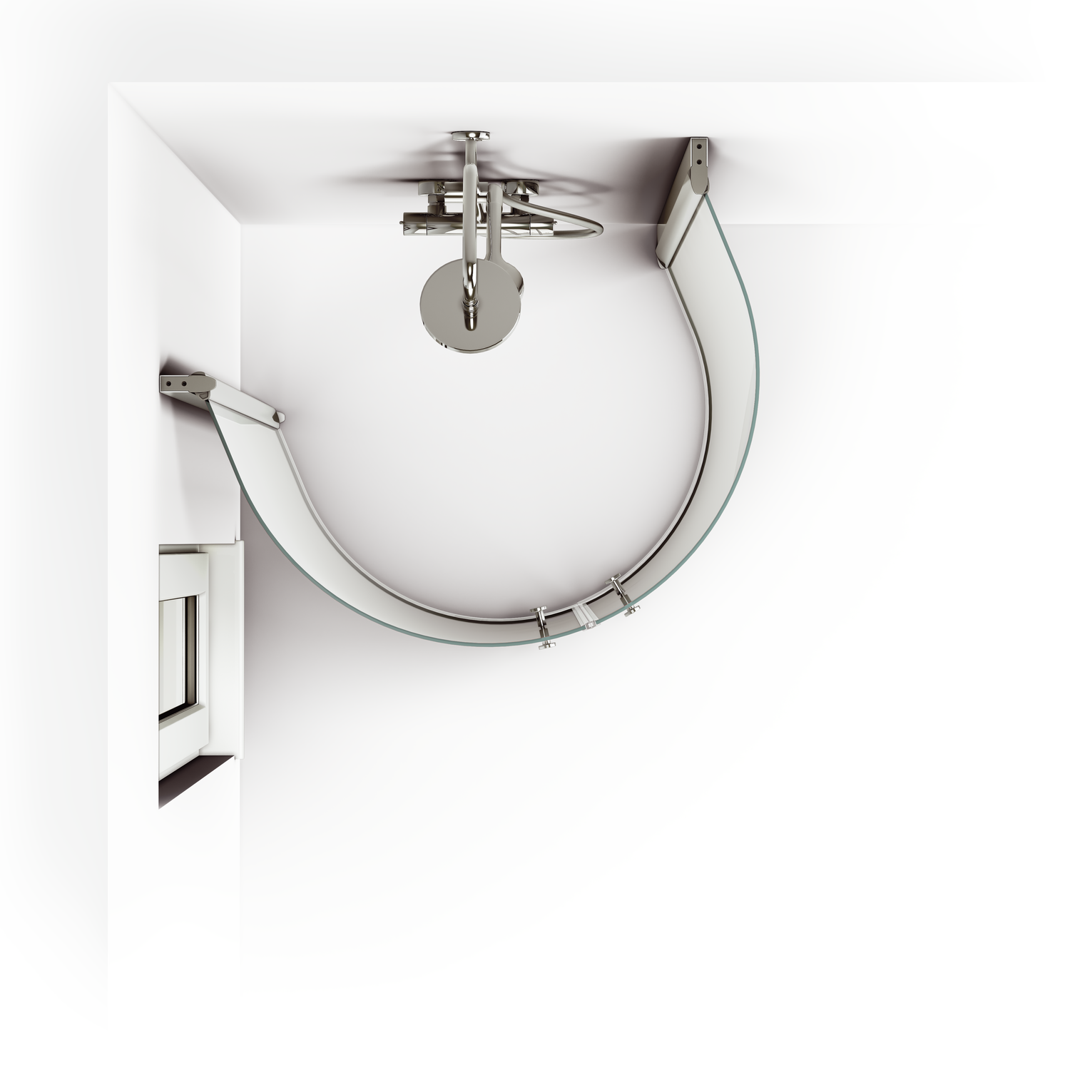 Duschhörna Spirit U är mycket flexibel och kan placeras mitt på en vägg eller snedställas i ett hörn framför ett fönster.