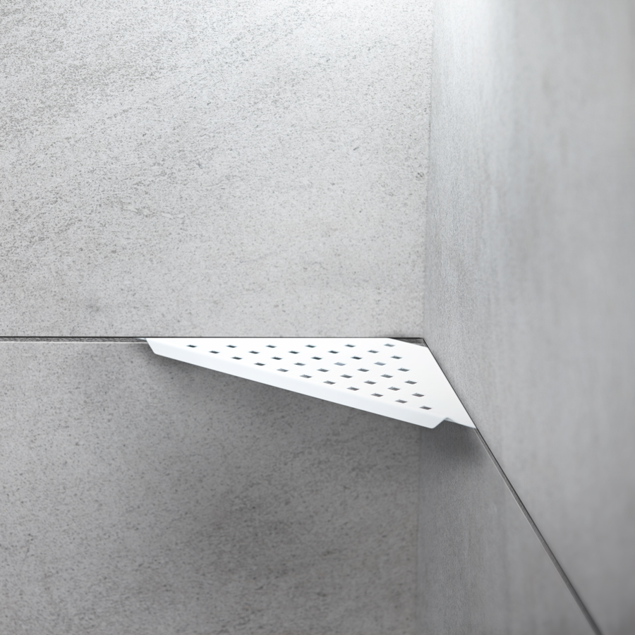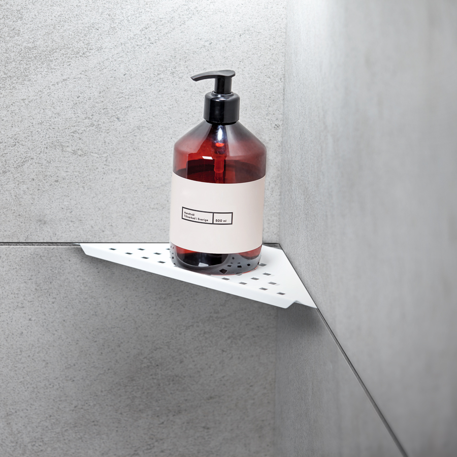 Elegant matt vit pulverlackerad duschhylla av rostfritt stål typ AISI 304.