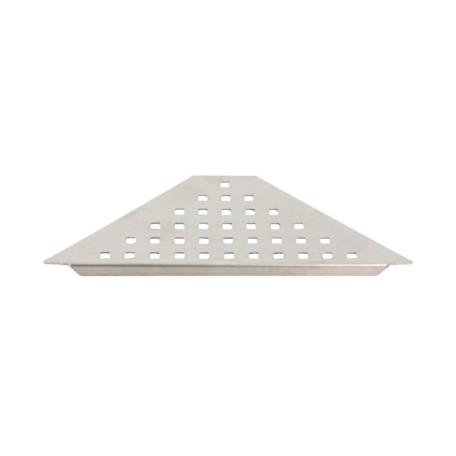 Elegant duschhylla av borstat rostfritt stål typ AISI 304. Godstjocklek: 1 mm. Hyllan fästs i fogen med silikon. Passar i 90° hörn. Ej syrafast.