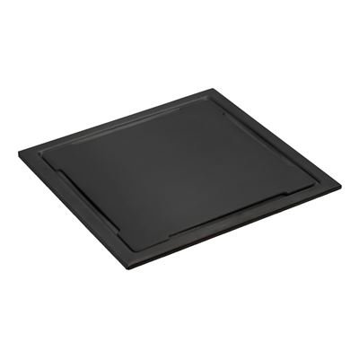 Elegant svart matt pulverlackerad golvbrunnssil av rostfritt stål typ AISI 430.