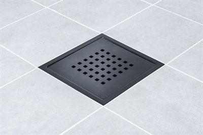 Elegant svart matt pulverlackerad golvbrunnssil av rostfritt stål typ AISI 430.