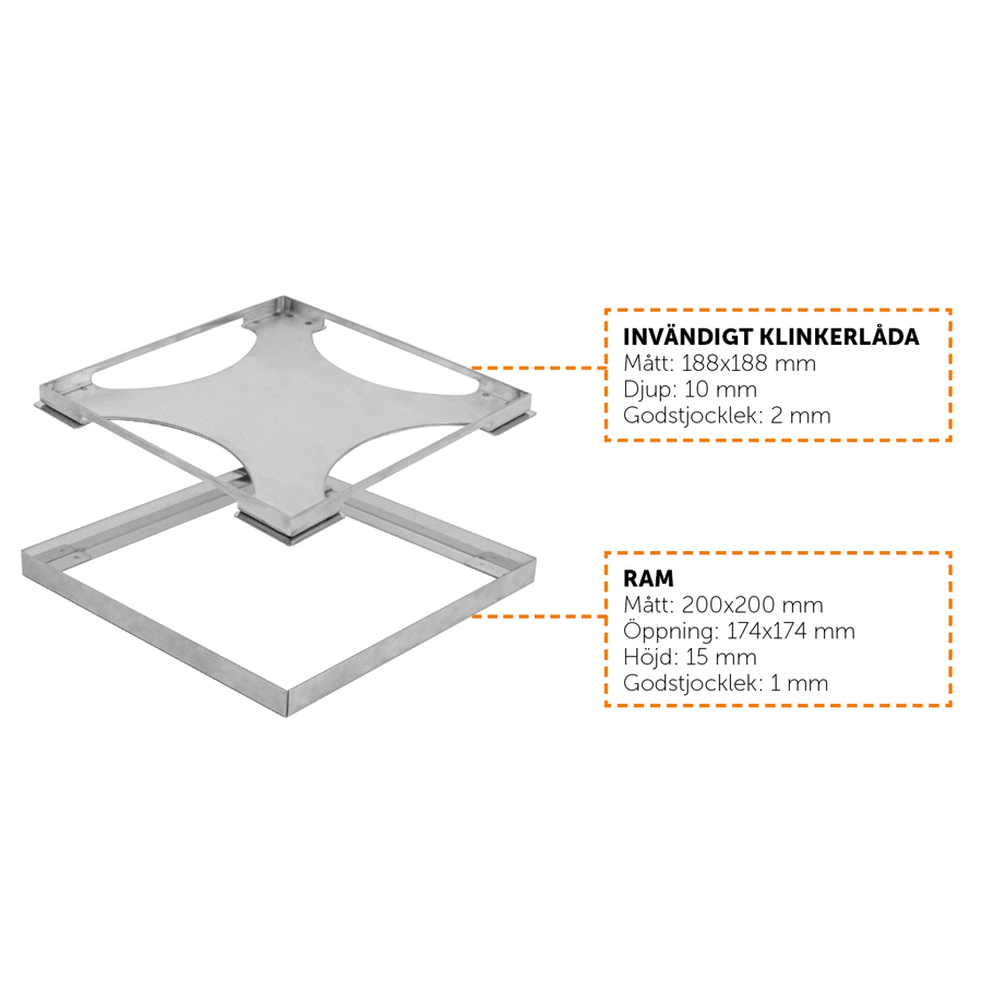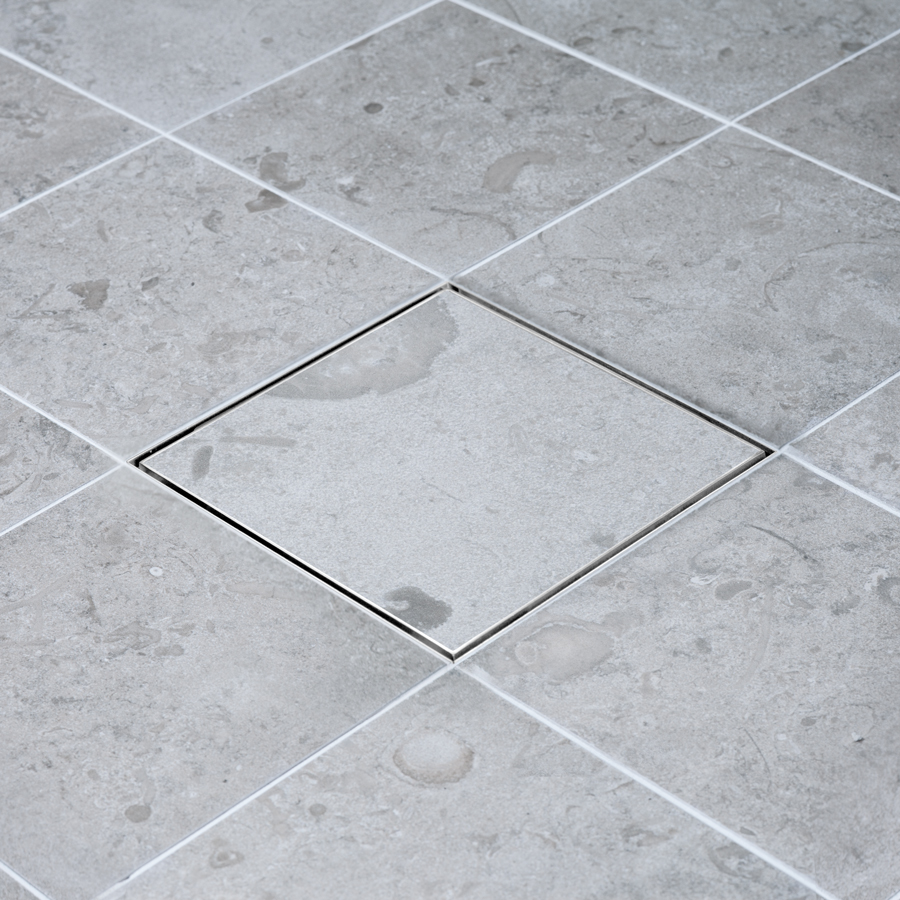 Stilren golvbrunnssil med ram för montering av klinker.