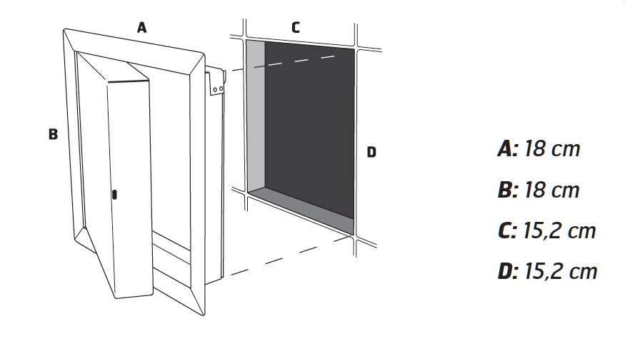 Matt svart pulverlackerad inspektionslucka. Består av ram, lucka och montageclips.