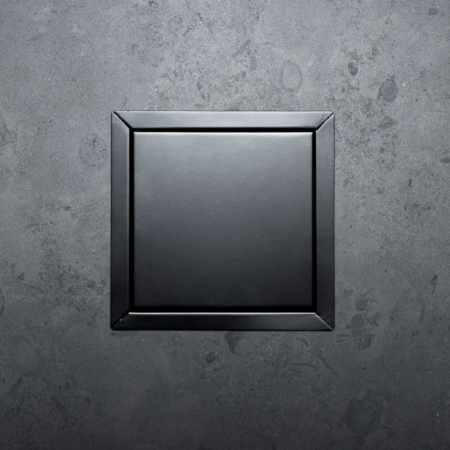 Matt svart pulverlackerad inspektionslucka. Består av ram, lucka och montageclips.
