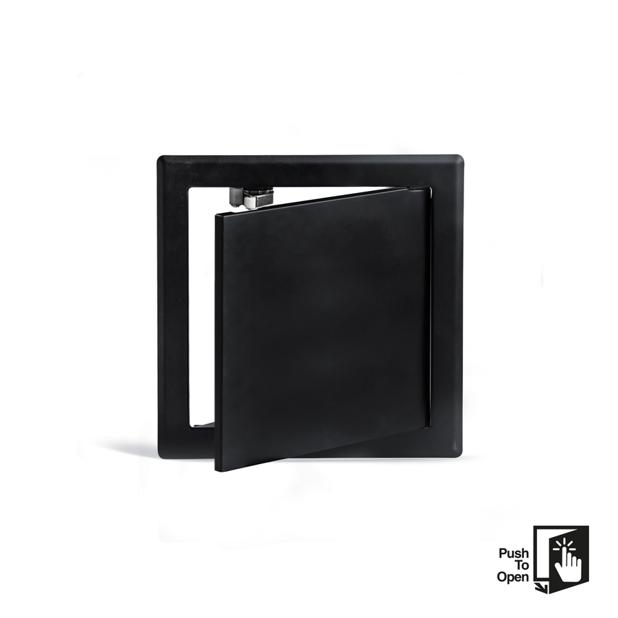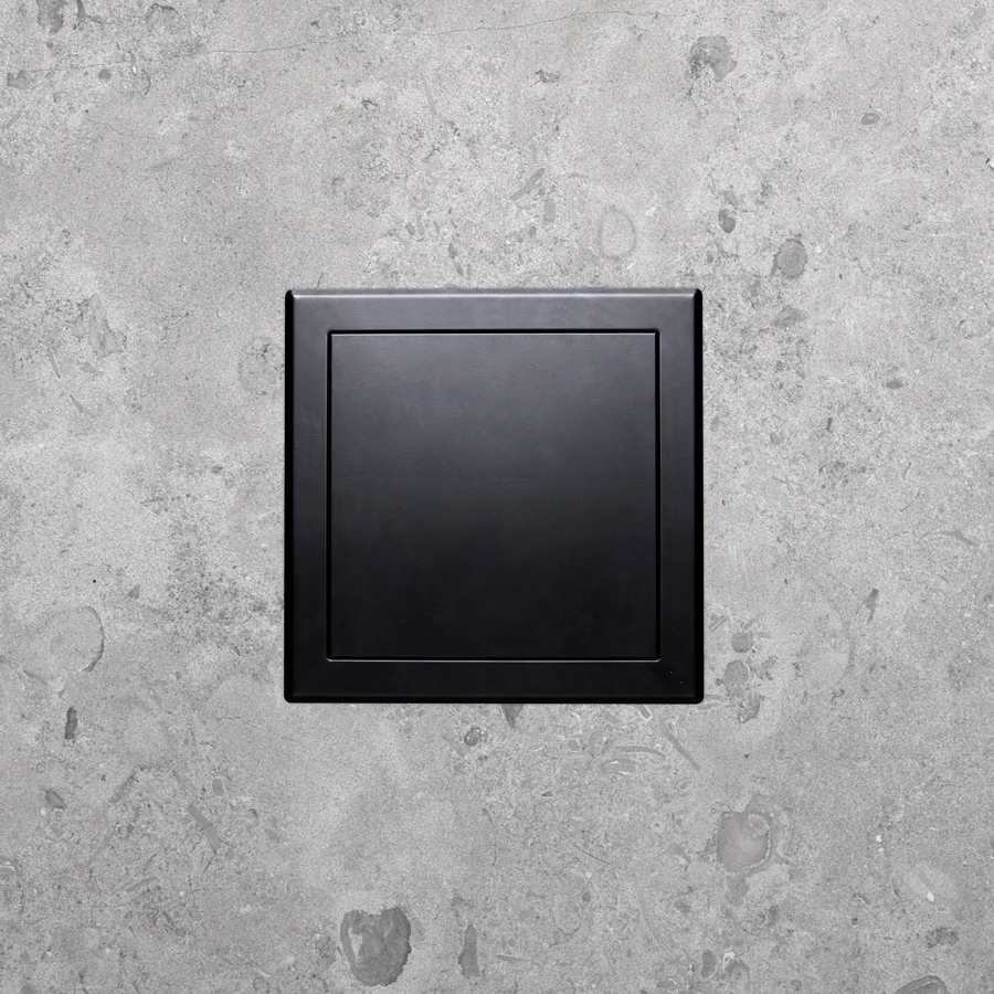 Matt svart pulverlackerad inspektionslucka.