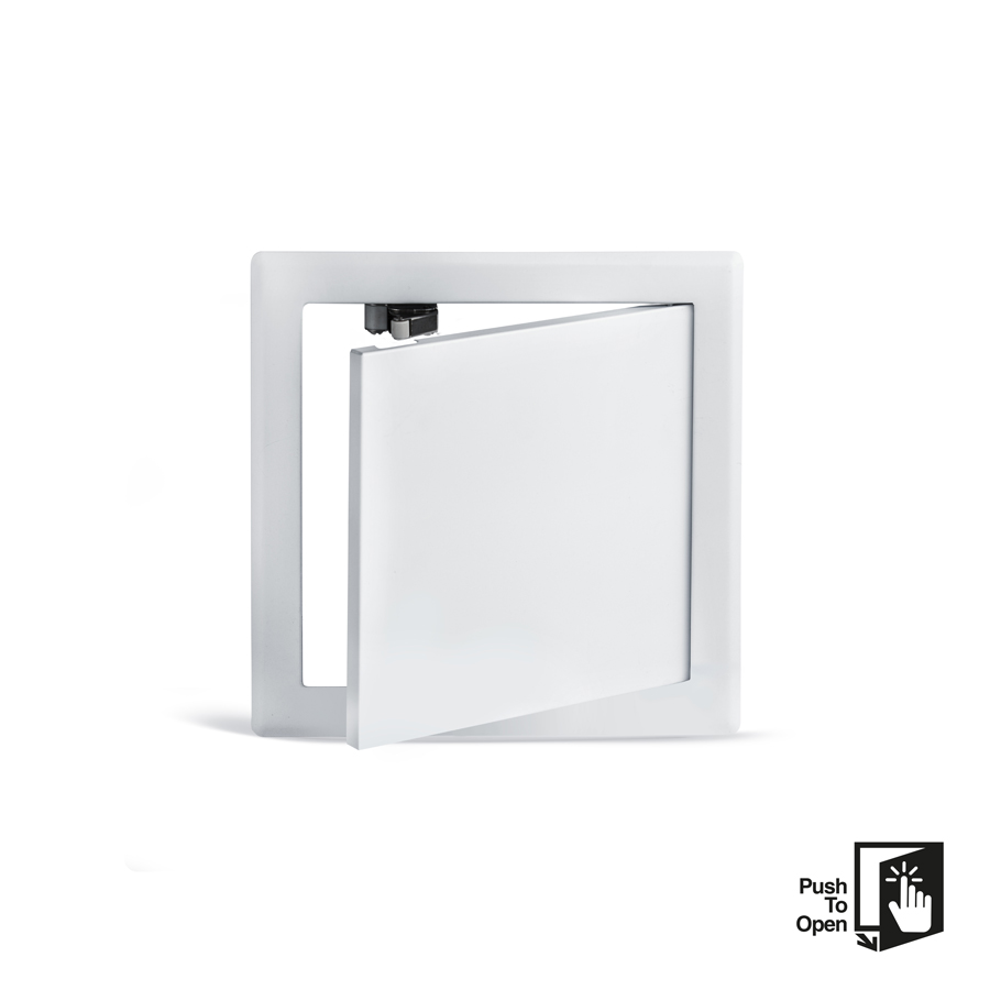 Matt vit pulverlackerad inspektionslucka.