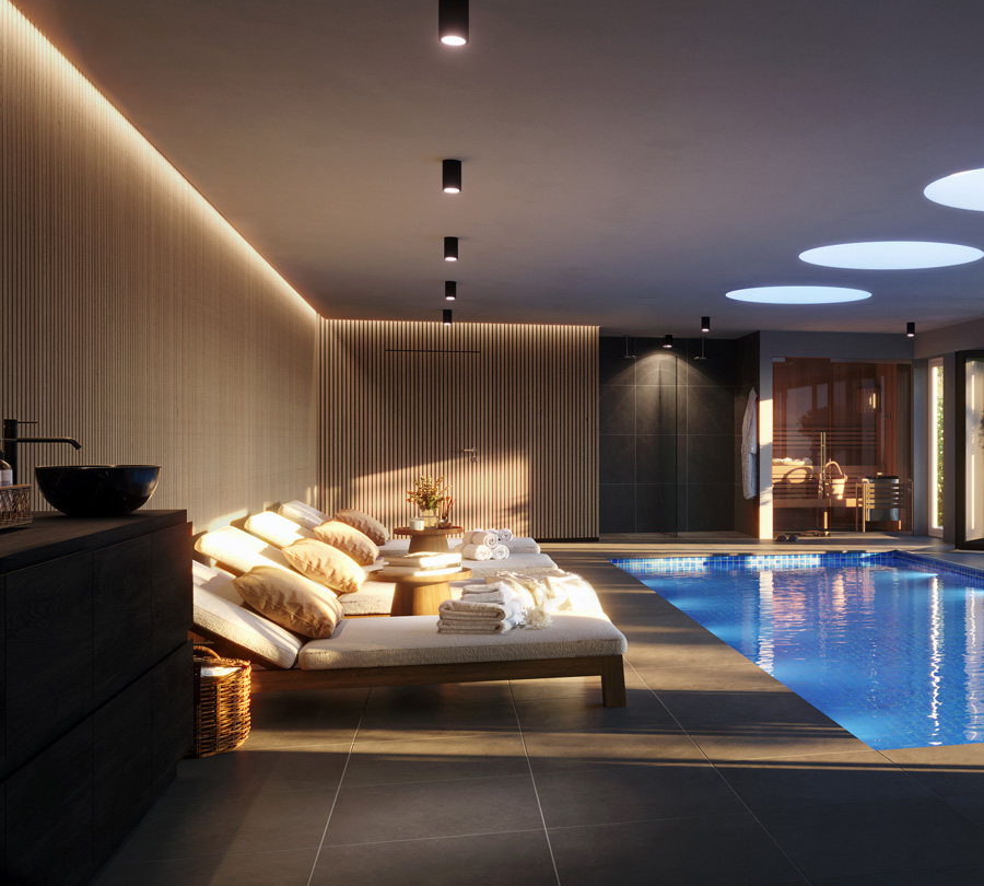 Helt underhållsfria akustikpaneler avsedda för användning i våtrum. Godkända för våtzon 2. Dessa paneler är tillverkade med en robust svart baksida av återvunnen plast och linjära ribbor av svart polystyren med en trädekor. Panelerna kan enkelt installeras på väggar och tak med hjälp av skruvar, spikar eller montagelim, och de är idealiska för användning i spa-anläggningar, badrum eller till och med utomhusmiljöer.