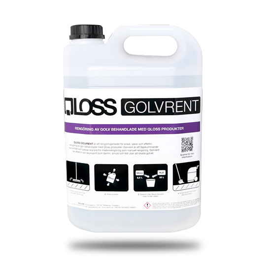 Qloss Golvrent är ett rengöringsmedel för enkel, säker och effektiv rengöring av golv behandlade med Qloss produkter. Golvrent är ett lågskummande koncentrat som passar lika bra för maskinrengöring som manuell rengöring. Precis som våra övriga produkter tillverkas Qloss Golvrent enligt egen receptur i vår fabrik som finns i Trelleborg.