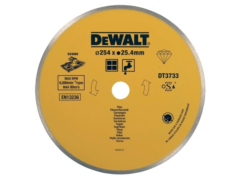 Lämplig för D24000 och andra stationära sågar, denna diamantkapskiva har en kontinuerlig kant för spånfria snitt i kakel och keramiska plattor. Idealisk för skärning i keramiska plattor, sten, granit och marmor, både vått och torrt. 250 mm diameter, segmenthöjd 8 mm