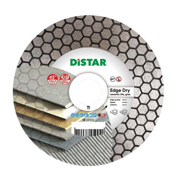 45° är enkelt! Skärning av keramiska plattor vid 45 grader ”slutare” – den vanligaste operationen vid efterbehandling. Många hantverkare gör det för hand med en vinkelslip. Krav på en diamantskiva: tillräcklig styvhet av höljet, samtidigt skärningsmjukhet, möjlighet till slipning av en kant. Det här är egenskaperna hos Edge Dry-skivan. Ett brett dubbelsidigt diamantlager på 25 mm förstärker kroppen och gör den styv. Samtidigt gör den diamantbärande bunten av ett lager med dragning i form av bikakor skärningen mjuk och högproduktiv. Det stora området skapar effekten av ”stöd”, riktar skivan strikt i en rak linje. Dessutom kan du slipa kanten på brickan. Med denna skiva blir 45° slutaren ett sant nöje! Komplettera gärna med Mechanic Slider 45° eller Duster 45°