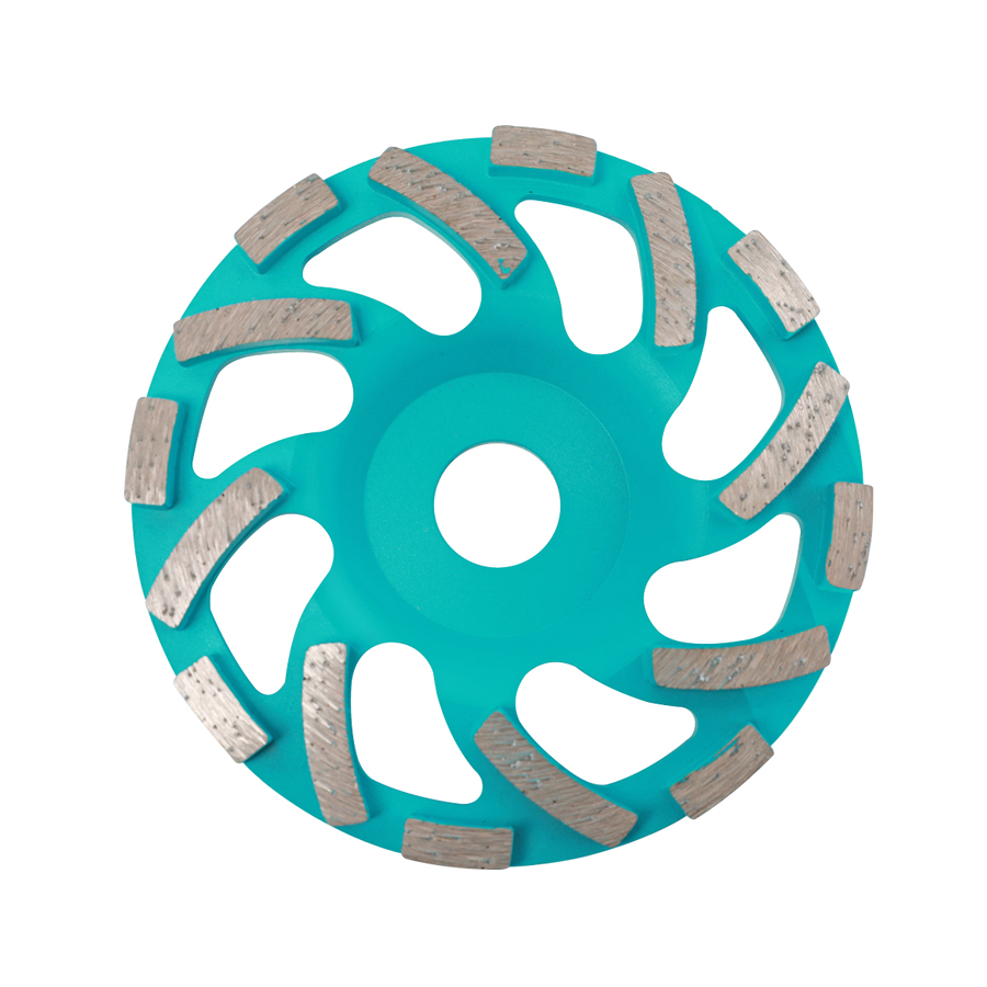 Diamantslipskål med fläktformat turbosegment. För snabb avverkning och avjämning av t.ex. betong, granit och natursten.