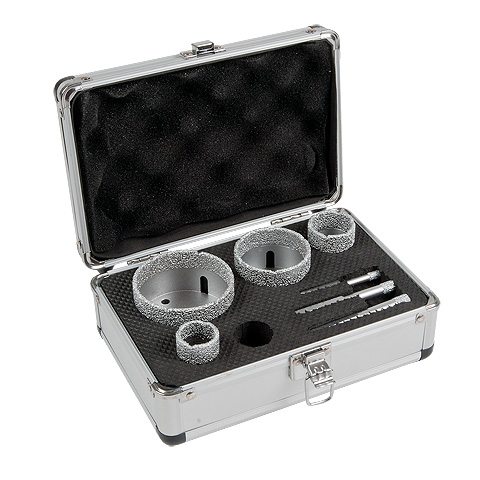 Diamantborr PREDATOR Maxi Mix för torrborrning i keramik. PREDATOR Borren används i vinkelslip. Borrar i alla typer av keramiskt material t.ex. granitkeramik. Vid korrekt användning håller en borr upp till 100 hål. Borren monteras i vinkelslip. Starta vinkelslipen och sätt an borren snett mot plattan. När borren fått fäste förs maskinen i cirklande rörelser. Rörelsen är mycket viktig för att borrkaxet ska försvinna vilket sänker arbetstemperaturen. Avlägsna restmaterialet om det fastnat i borren. PREDATOR CHUCK Borren används i borrmaskin. Borrar i alla typer av keramiskt material t.ex. granitkeramik. Vid korrekt användning håller borren upp till 35 hål. Borren monteras i borrmaskin. För högsta prestanda är rekommenderat varvtal >3000. Starta borrmaskinen och sätt an borren snett mot plattan. När borren fått fäste förs maskinen i cirklande rörelser. Rörelsen är mycket viktig för att borrkaxet ska försvinna vilket sänker arbetstemperaturen. Borren kyls i vatten var femte sekund. Borrsetet innehåller totalt sju borrar varav fyra har fäste för vinkelslip och tre chuckfäste. PREDATOR 28mm, 35mm, 55mm och 70mm. PREDATOR CHUCK 6mm, 8mm och 10mm.