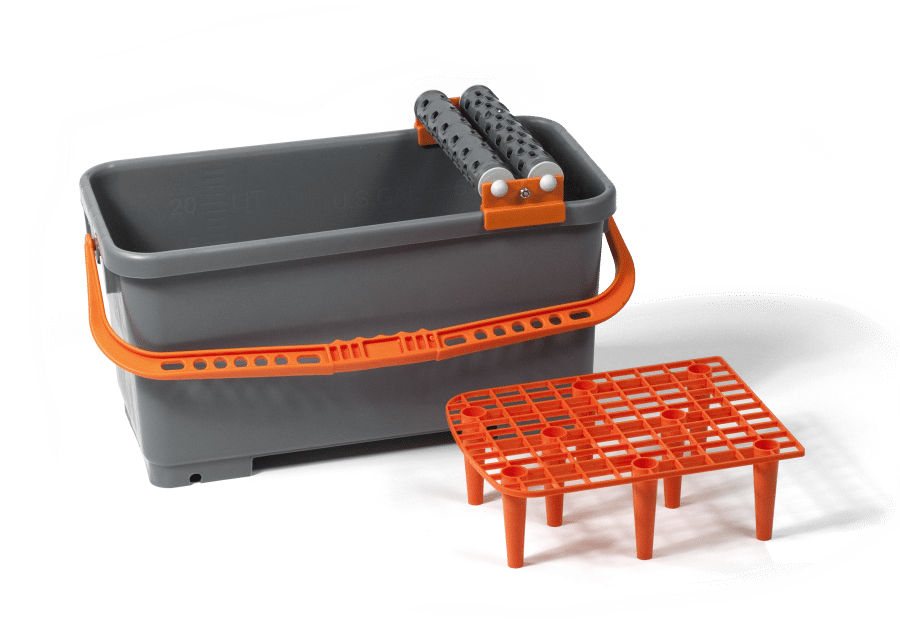 Innehåller rengöringsbalja 23 liter, urkramningsrulle Rapido och avtryckargaller.