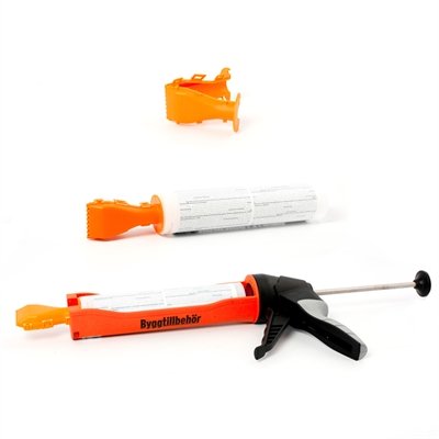Tillverkad av plast. Fästs på patronen. Passar patronpistoler med U-öppning. Limmet appliceras och sprids i ett moment. Ger sju rader till en jämn anläggningsyta på 40 mm.