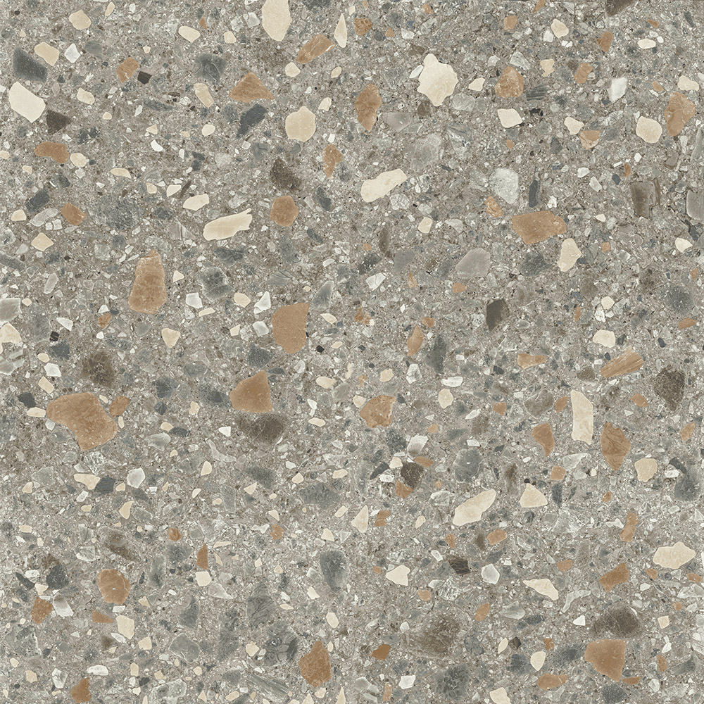 Häftig marmorliknande granitkeramik. Inspirerad av den italienska marmorn ceppo di gre med variationer av olika stenflarn.