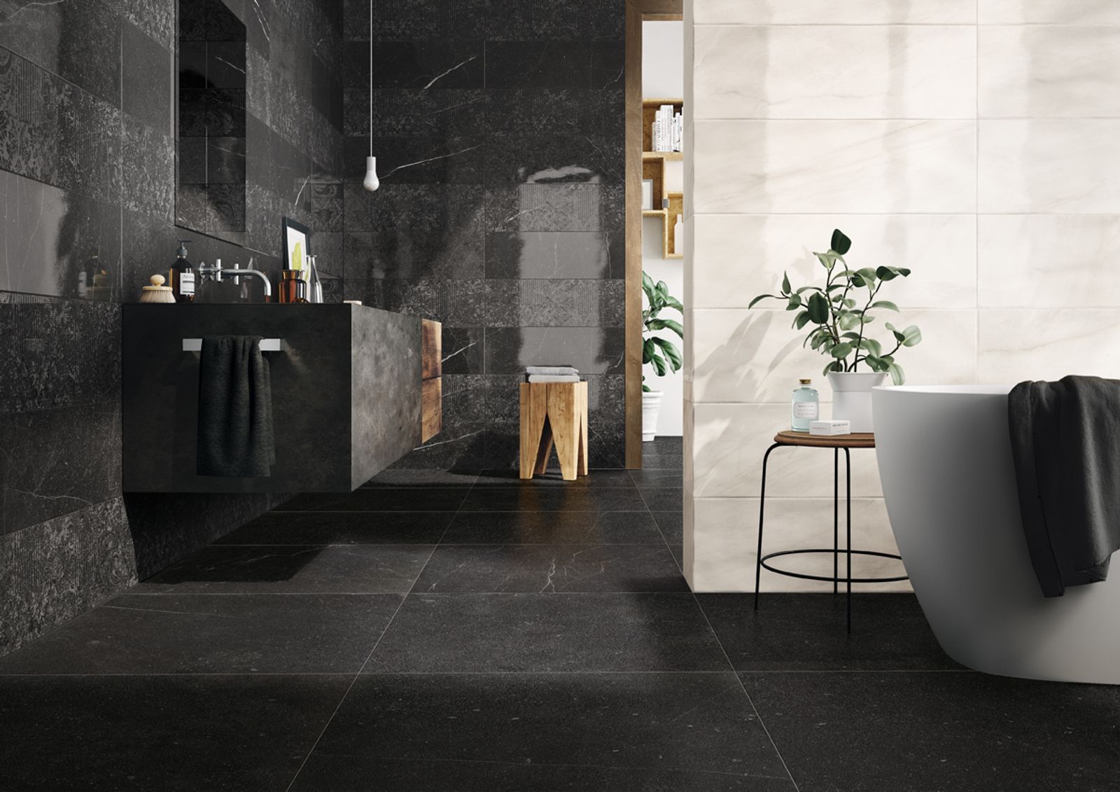 Vit marmor, beige marmor / sten och svart sten. GENUS!