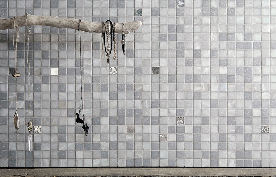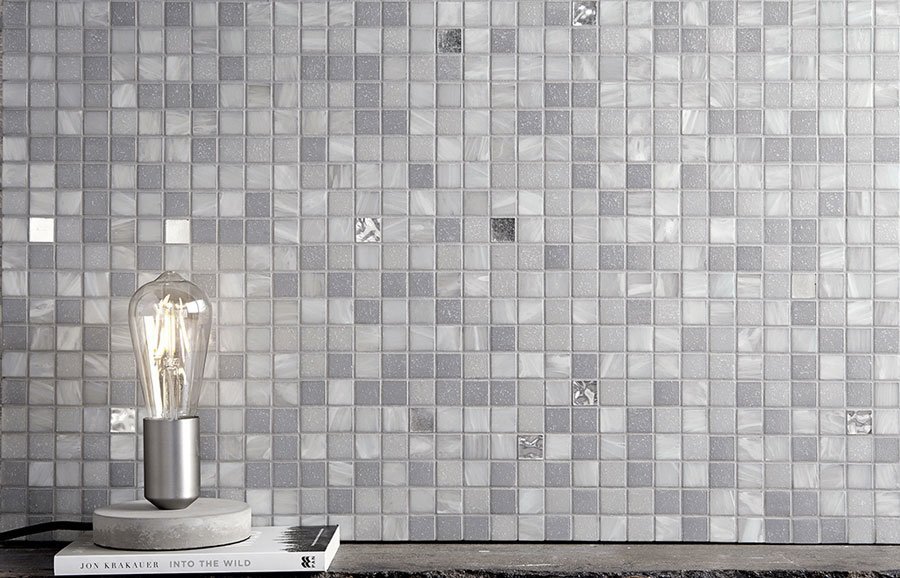 Fogens färg påverkar slutresultatet lika mycket som valet av mosaiken. För att uppnå ett homogent uttryck rekommenderar vi en fog som är matchad till mosaikens färg. En starkt kontrasterande fog tar större uppmärksamhet och ger ett skarpare fogmönster men kan samtidigt vara mycket effektfullt. Vi rekommenderar Ultracolor Plus från Mapei. Den är finkornig och fyller ut mycket bra, med en god vidhäftning till glaset.