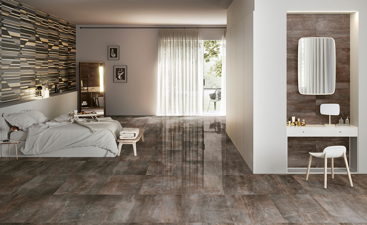 Ytorna på Fossil tolkar dessa suggestiva material, breddar materialspråket för inredning och avslöjar texturer med subtila ådror som ger en alternativ uppfattning om det keramiska materialet genom användning av intensiva färger och eleganta nyanser.