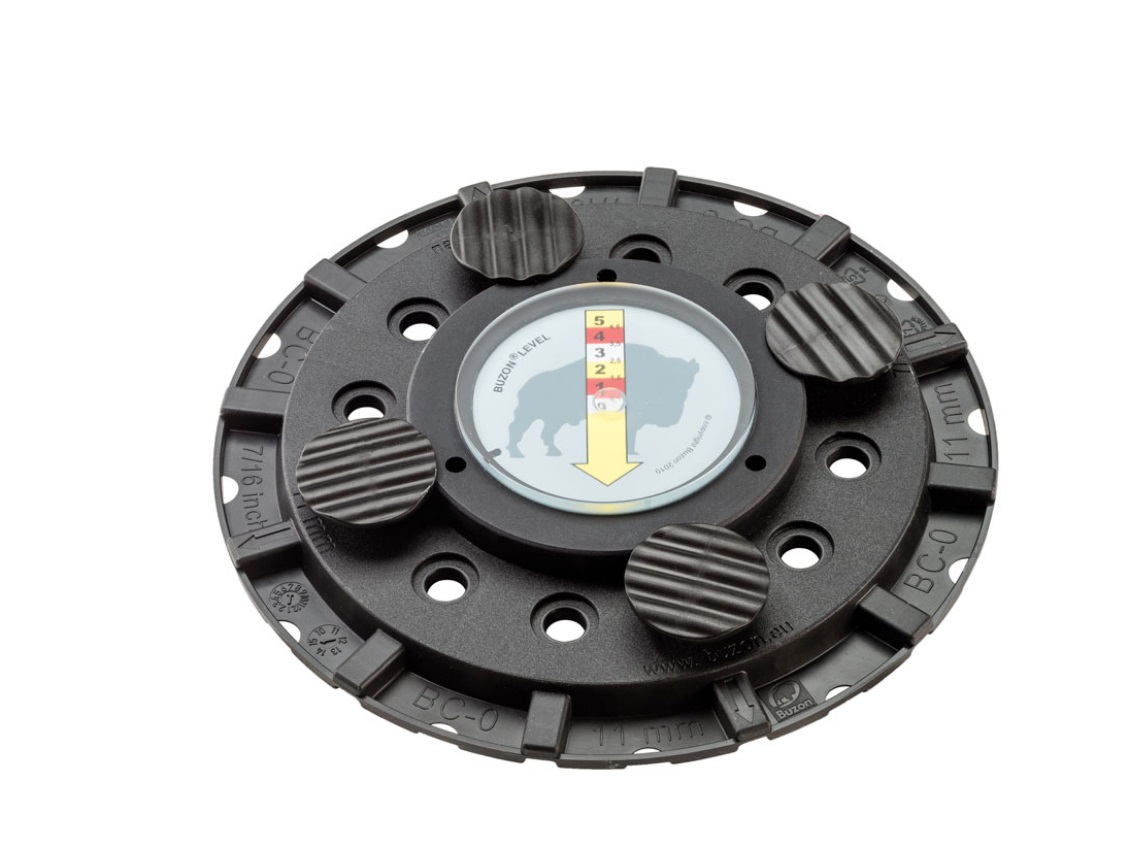 Lutningsmätare med vattenpass. Tillverkad av polypropen. Mäter värdet och riktningen för lutningen där en Buzon piedestal kommer att placeras. Denna information är väsentlig för användningen av Buzons korrigeringssystem och lutningskontroll.