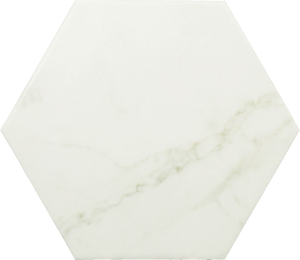 Snygg marmorliknande klinkerplatta i hexagonformat som ger en exklusiv känsla till ditt kök eller badrum.