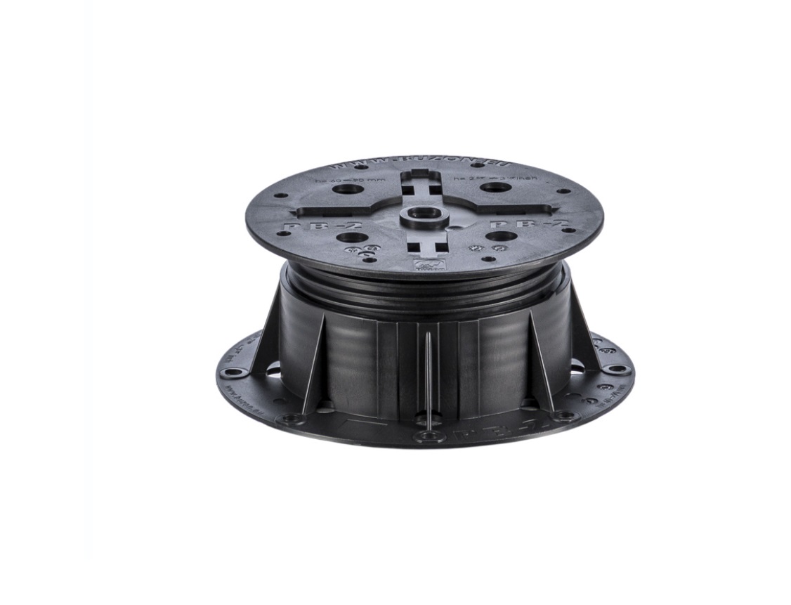 Den förstorade ytan på ovansidan av Buzons PB-piedestaler är anpassad för att stödja terasser av tyngre material som t.ex. utomhusklinker, natursten, betongplattor. PB-piedestalen är enkel att justera och möjliggör snabb och robust installation.