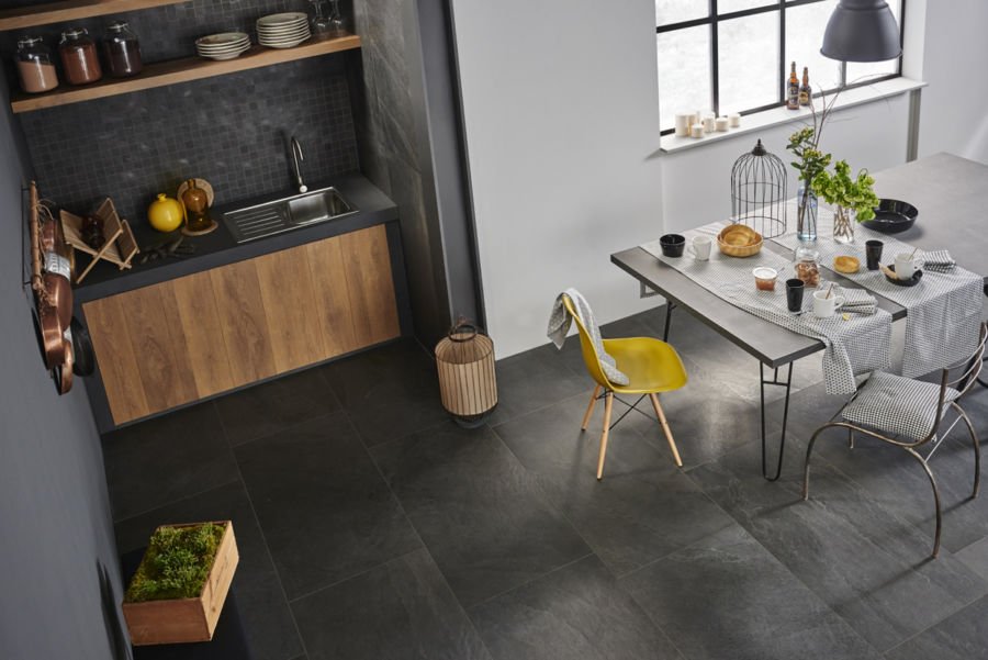En granitkeramik inspirerad av stenen och därför är ingen platta den andra lik. Spännande och varierande mönster och färg på varje platta.