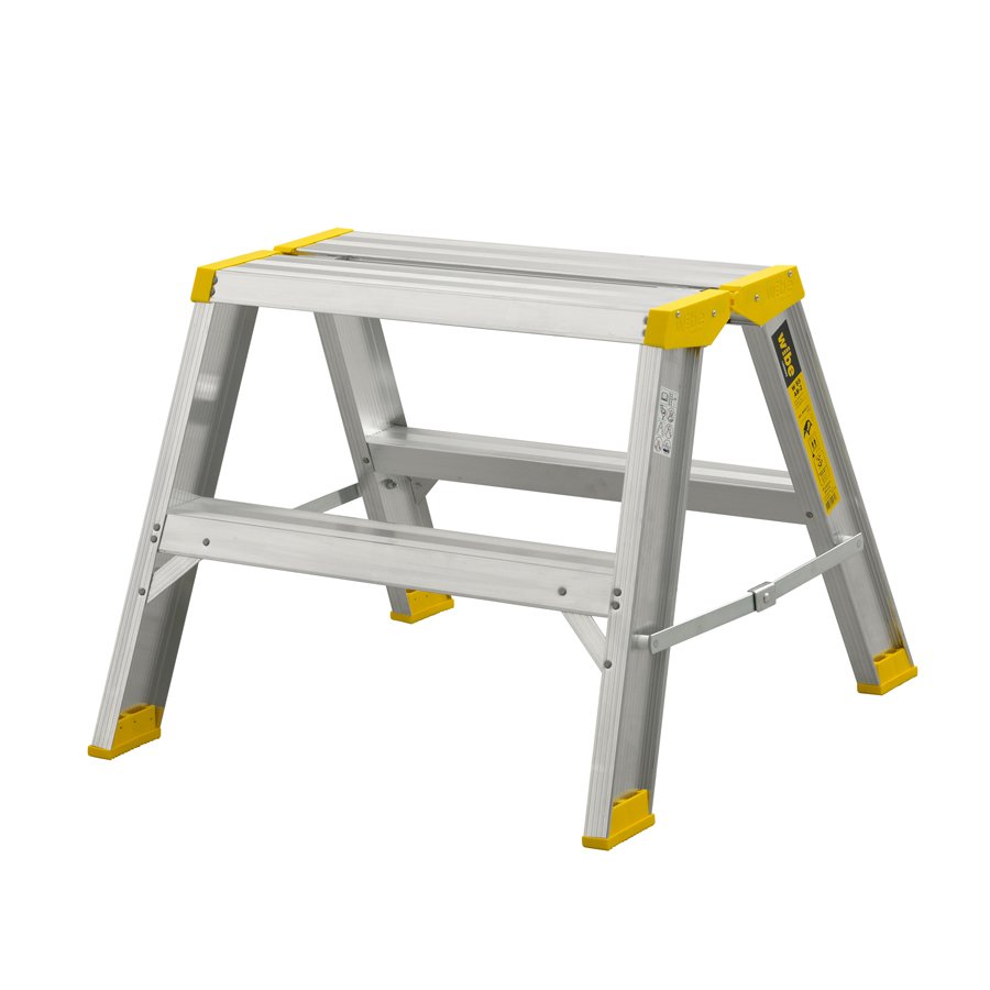 Stabil och hopfällbar stege av anodiserad aluminium.