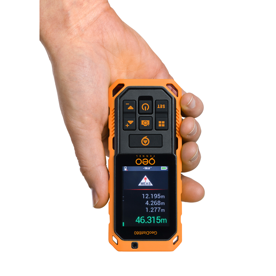 Kompakt och lätt avståndsmätare. Mäter distans, area och volym. Höjduträkning med Pythagoras funktion. Upplyst digital display. Tydlig ljudsignal som bekräftar mätningen. Damm- och vattenskydd enligt IP65. Räckvidd: 80 m. Mått: 115 x 50 x 26mm. Vikt: 148 g.