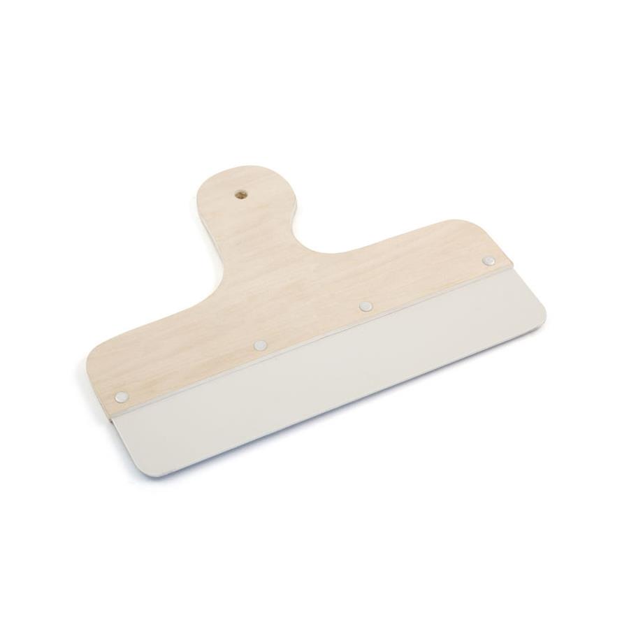 Bredspackel med trähandtag och blad av polystyren. För t.ex. montering av våtrumsfolie eller vävduk.
