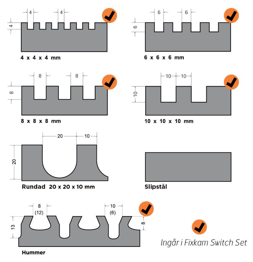 Fixkam Switch är helt unik på marknaden och dess delar utgör ett komplett system av utbytbara fixkamsblad.