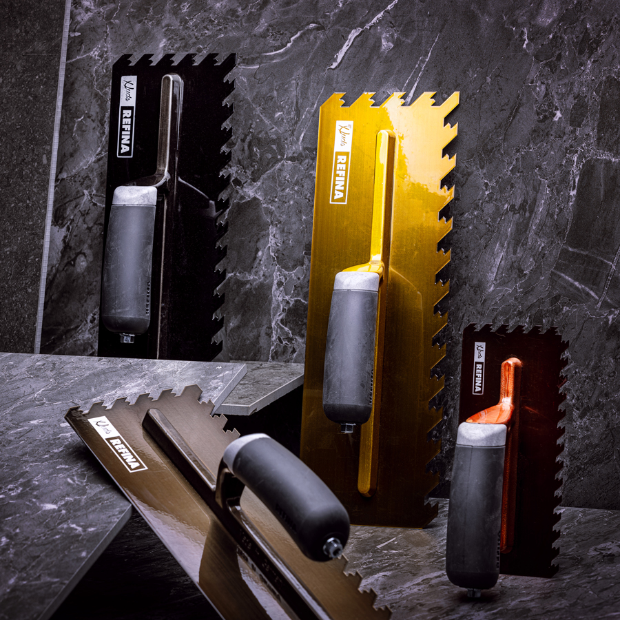Fixkam i 0,7 mm rostfritt stål från serien HUDS NotchTile™ från REFINA – en hållbar och unik premiumserie designad för proffs av proffs.