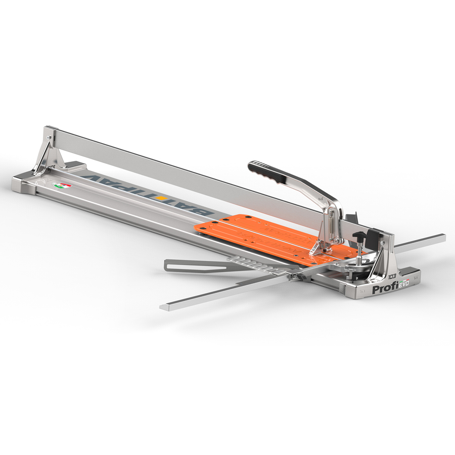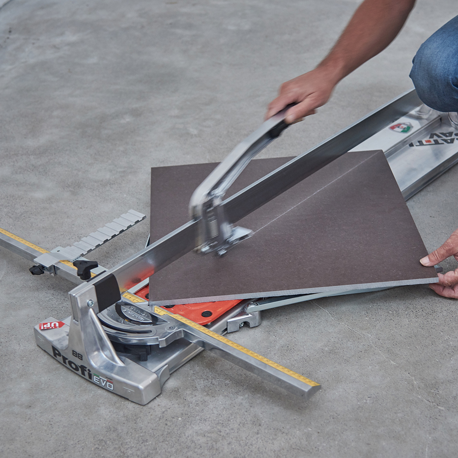 Kakelskärare med push-funktion används genom att skärtrissan dras från användaren och ritsar plattan.