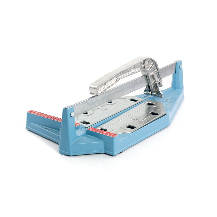 Proffsskärare för mindre plattor. Fast linjal och fjädrande plattstöd.