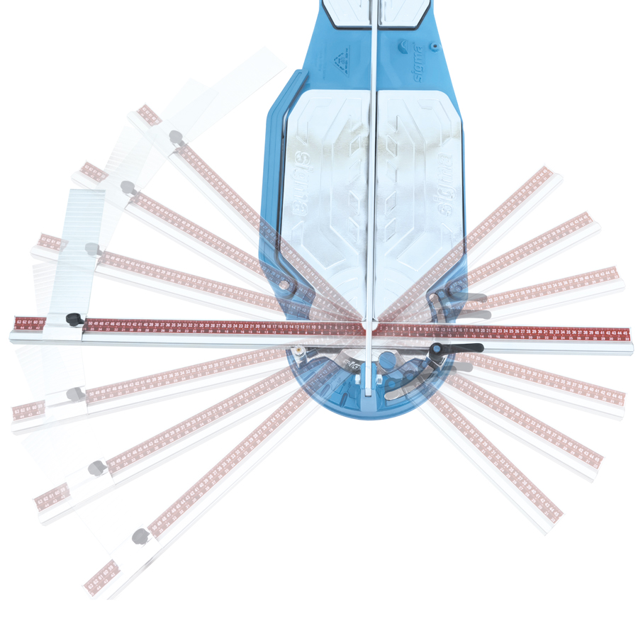 För kapning av keramik med max plattjocklek 3-19 mm. Behöver inte justeras för olika plattjocklekar. Ställbar tydlig linjal från -45° till +45°. Tydligt fönster för visning av vinkel. Extra långt och ergonomiskt ”NEX”-handtag för ökad kraft vid rits- och knäckmoment. Handtagets konstruktion gör att skärtrissa och rits syns tydligt vid användning. Anhållet kan placeras nära skärlinjen. Utfällbara stödarmar. Praktisk förvaring för extra skärtrissor. 2 st hjul för enkel förflyttning.