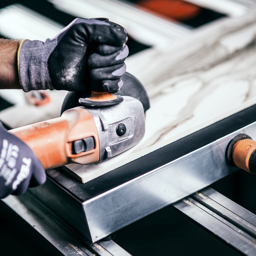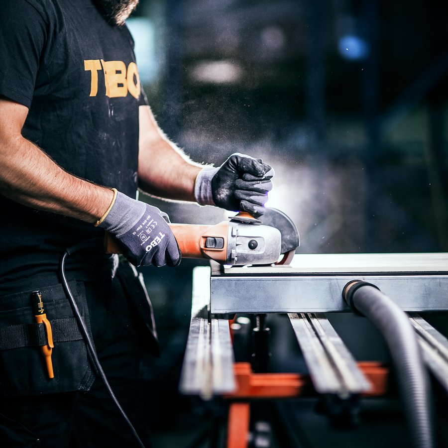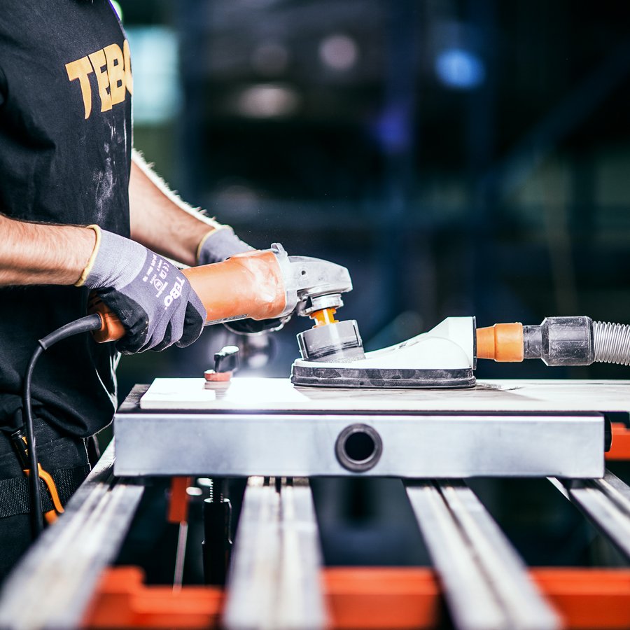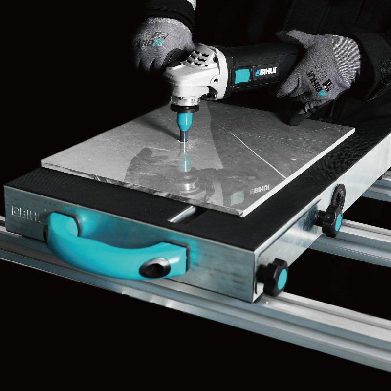 Portabel kaplåda av plåt med gummerad ovansida och Softgriphandtag. Längsgående skåra för kapning och hål för håltagning. Ansluts till dammsugare vid kapning och kombineras med ett dammutsug vid håltagning. Gummifötter gör att den står stabilt mot underlaget. Lucka för enkel rengöring av större spillbitar.