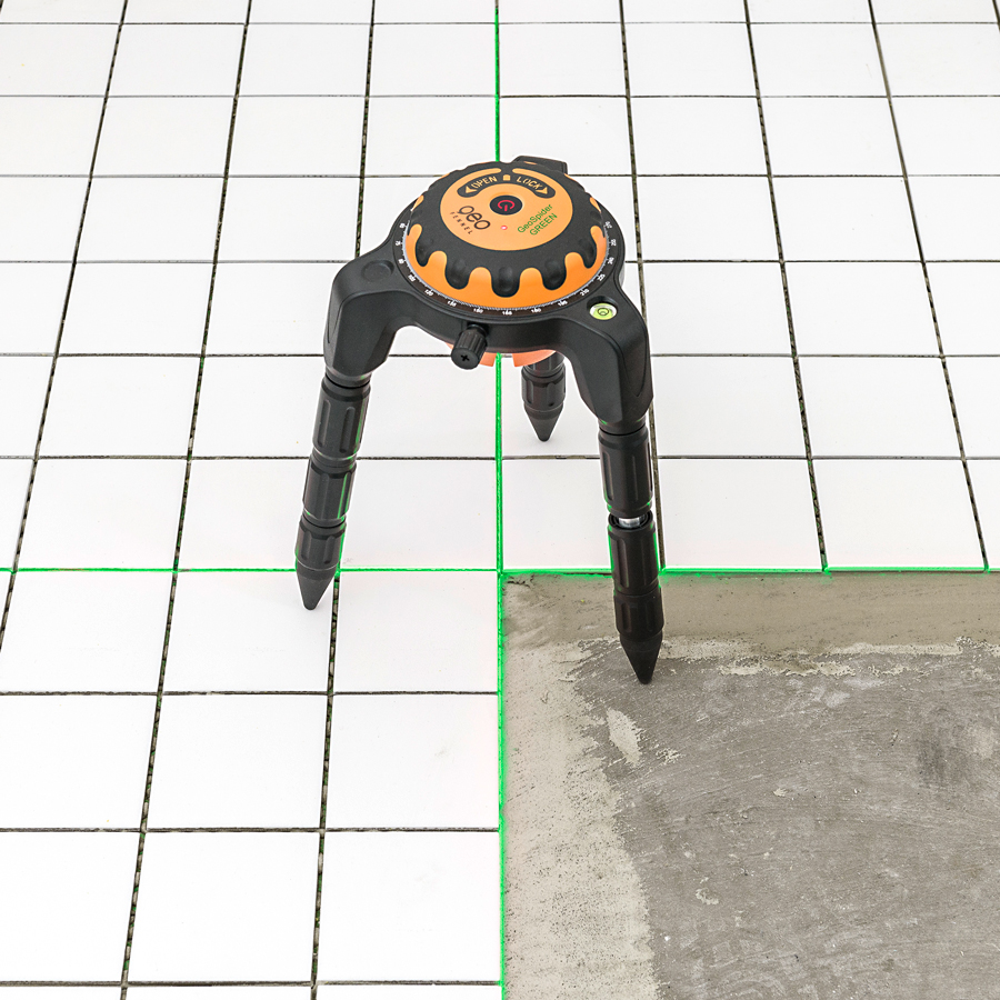 Batteridriven golvlaser som visar 2 st 90° vinklar mot varandra.