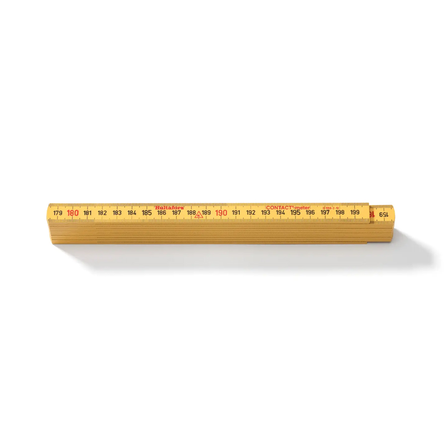 Contactmeter tillverkad av glasfiberförstärkt polyamid. Hög motståndskraft mot fukt. Kan placeras plant mot arbetsytan då skalan sitter på insidan av första stickan. Invändig metrisk gradering med centimeter/millimeter på båda sidor samt röda decimetermarkeringar.