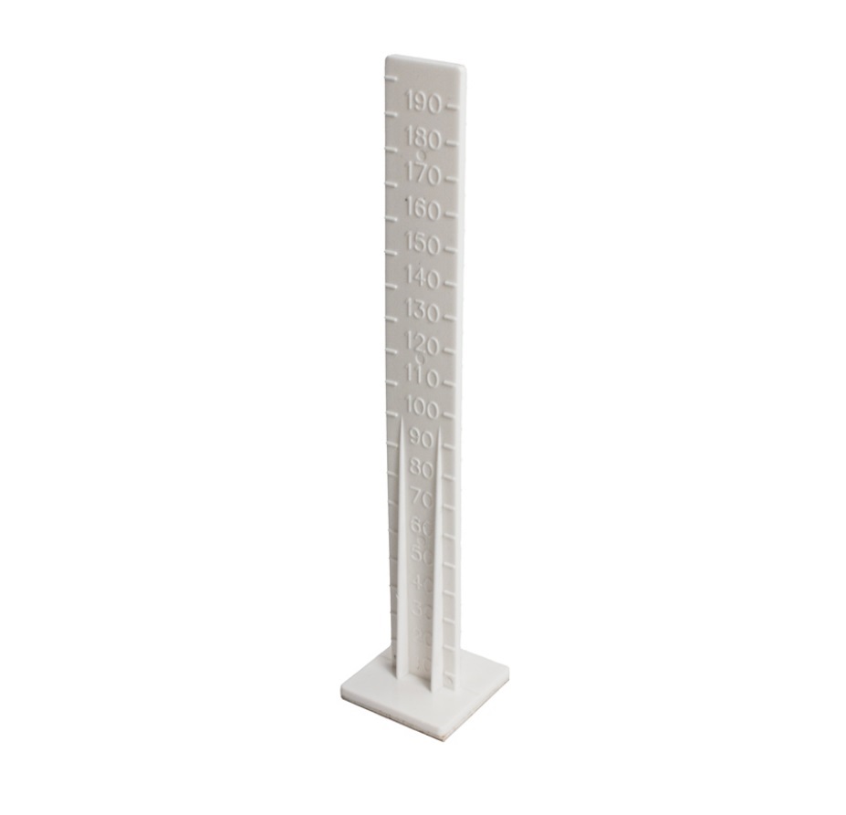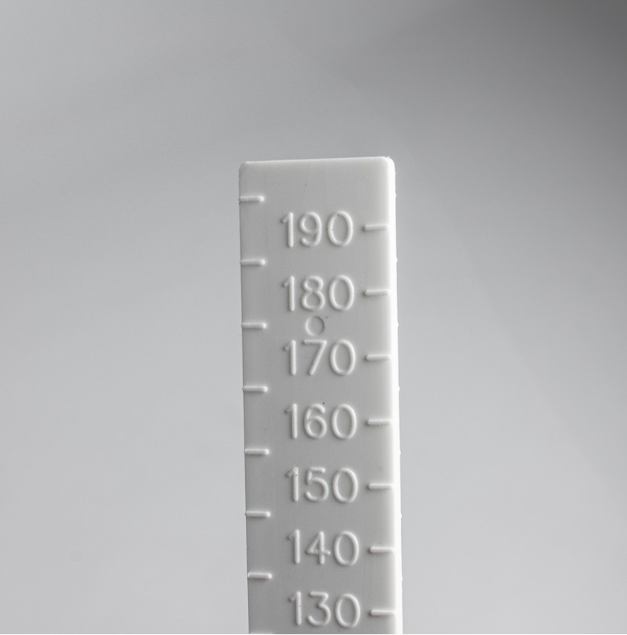 Självhäftande nivåmarkör med tydlig gradering 10-200 mm och förstärkt design. För nivellering av EPS. Klipp av till önskad höjd och placera cirka en markör per m².