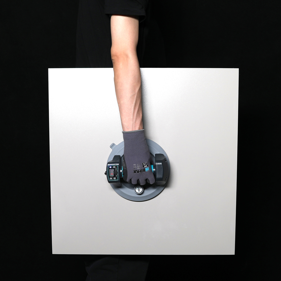 Batteridriven robust plattlyft med gummerad handtag för många olika typer av släta material som t.ex. kakel, klinker, granitkeramik, glas och metall. Undertryck skapas med en knapptryckning och släpps med dubbel knapptryckning. Dubbel undertrycksövervakning via både digital display och vakuummanometer. Vid förlust av vakuumtryck startas pumpen automatiskt tills trycket har återställts. Behåller undertrycket även vid batteribyte. Lyfter upp till 100 kg horisontellt och vertikalt.