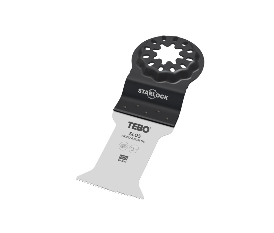 Sågblad till multiverktyg för kapning i trä, gips och plast. Rundat skäregg som tillåter exakt och smidig instickssågning.