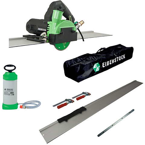 Sågsats med tillbehör och en praktisk diamantsåg (art.nr 6136) för både våt-och torrkapning av natursten, stengods, kakel, klinker och granitkeramik. Geringsjustering (steglöst upp till 45°) och justering av skärdjup (steglöst upp till 36 mm) utan verktyg. Nedsänkningsfunktion, integrerad vattenförsörjning med flödesregulator- enkel justering av vattevolymen och dammfritt arbete under våtskärning. Rullstyrd platta för slät styrning och som skyddar ytan.