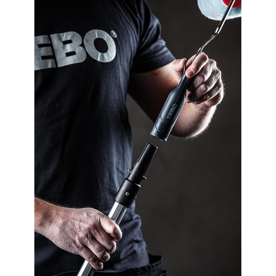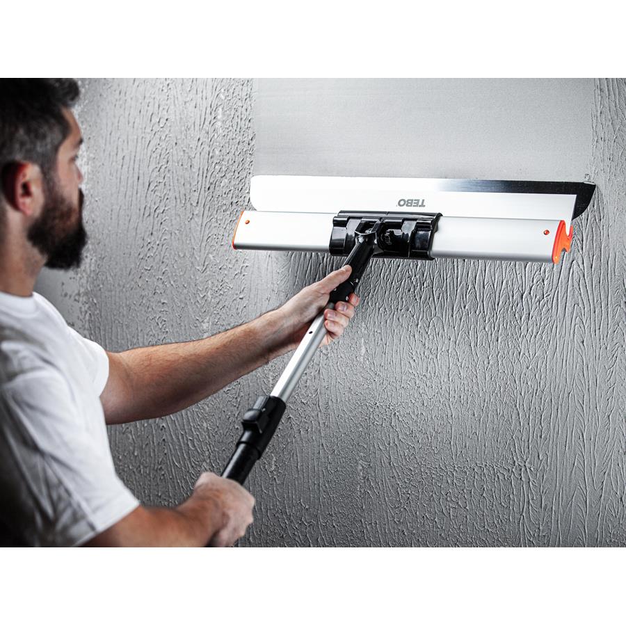 Teleskopiskt skaft med snabbfäste till bredspacklar i serien ErgoFlex. Tillverkat av glasfiber, aluminium och ABS-plast. Justerbar längd 930-1430 mm. Används tillsammans med Adapter ErgoFlex. Passar även Tebo Rollerbyglar.