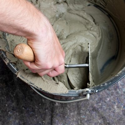 Rundningen gör att sleven inte sliter mot hinken och att man slipper plastrester i blandningen.