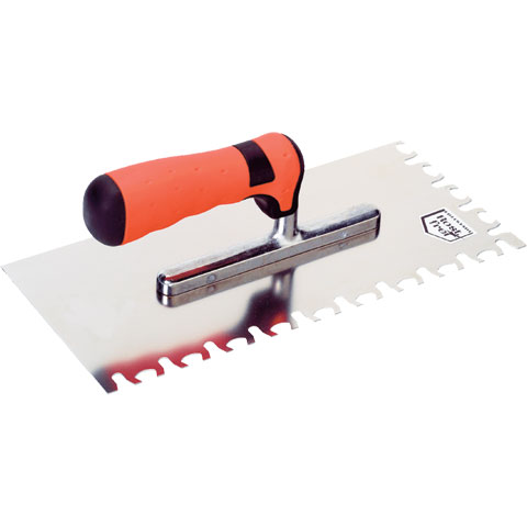 Rostfri tandspackel med ergonomiskt softgriphandtag. Avsedd för flytfix. Med tandspackelns speciella utformning ”hummer” får man full täckning och en jämn bädd av fix. Med topparna som bildas blir det material att arbeta ned plattan med.